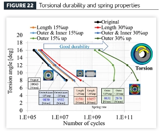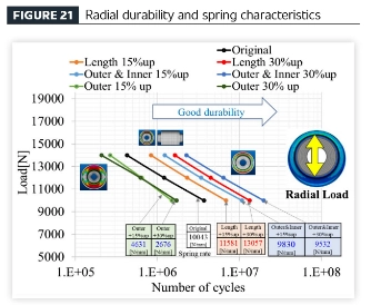 संशोधन निष्कर्ष: जेव्हा फक्त बाह्य व्यास वाढवला जातो, तेव्हा रेडियल भारांच्या विरूद्ध टिकाऊपणा कमी होतो, टॉर्सनल टिकाऊपणा सुधारतो आणि स्प्रिंग कार्यप्रदर्शन मऊ होते. जेव्हा आतील आणि बाह्य व्यास दोन्ही वाढवले जातात, तेव्हा रेडियल भार आणि टॉर्सनल लोड्स अंतर्गत टिकाऊपणा दोन्ही सुधारतात, तर स्प्रिंग कामगिरी मऊ होते. जेव्हा अक्षीय लांबी वाढवली जाते, तेव्हा रेडियल भार आणि टॉर्सनल भारांच्या अंतर्गत टिकाऊपणा दोन्ही सुधारतात आणि स्प्रिंग कार्यप्रदर्शन कडक होते.
