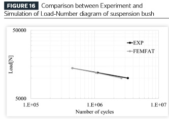 पुढे, वरील स्ट्रक्चरल विश्लेषणाचे परिणाम सॉफ्टवेअरच्या थकवा विश्लेषण मॉड्यूलमध्ये हस्तांतरित केले जातात (या प्रकरणात मॅग्ना ECS मधील FEMFAT सॉफ्टवेअर वापरून) आणि टिकाऊपणा चाचणी परिणामांशी तुलना केली जाते. चाचणी आणि विश्लेषण थकवा जीवन आणि क्रॅक स्थान दोन्ही मध्ये उत्कृष्ट सुसंगतता प्रदर्शित करतात.