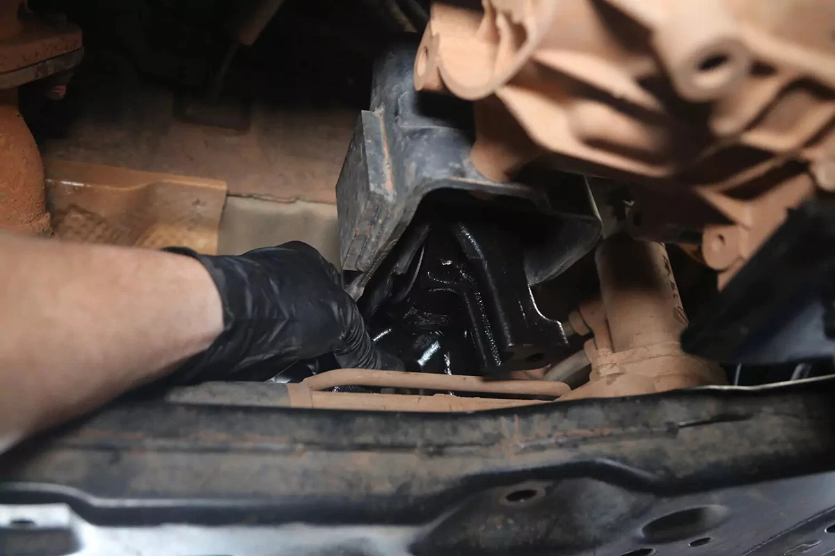 ट्रान्समिशन माउंट काढण्यासाठी तुमच्या वाहनाला इतर कंस किंवा घटक काढण्याची आवश्यकता असू शकते. अचूक प्रक्रियेची पुष्टी करण्यासाठी तुमच्या वाहनाच्या दुरुस्तीच्या मॅन्युअलचा सल्ला घ्या.